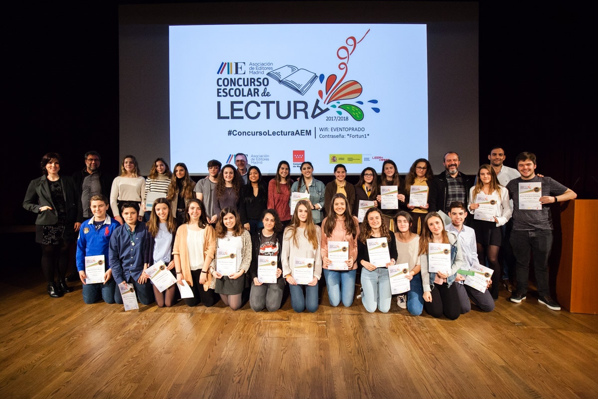Foto de los equipos finalistas y ganadores de la edición 2017-2018 del Concurso Escolar de Lectura AEM. Colegio Quercus, Colegio CEIPSO El Cantizal, Liceo Francés de Madrid, Colegio Salesianos El Pilar y Colegio Fray Luis de León. ¡Enhorabuena a todos y muchas gracias por participar!